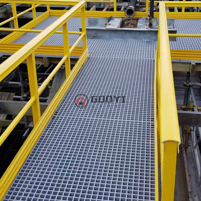 What are the methods of installing FRP grating? FRP grating can be widely used in petroleum, chemical electronics, electric power, paper industry, printing and dyeing, electroplating, marine exploration, sewage treatment and other industries. Today, I will introduce the installation methods of trench installation, staircase installation and platform installation for three different applications.